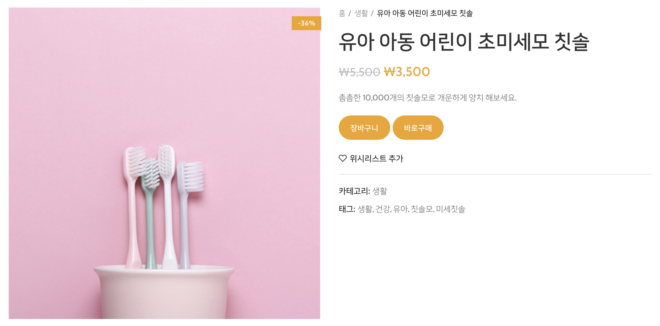 바로구매 설정이 정상적으로 된 경우, 상품 상세 페이지에서 바로구매 버튼이 표시됩니다.