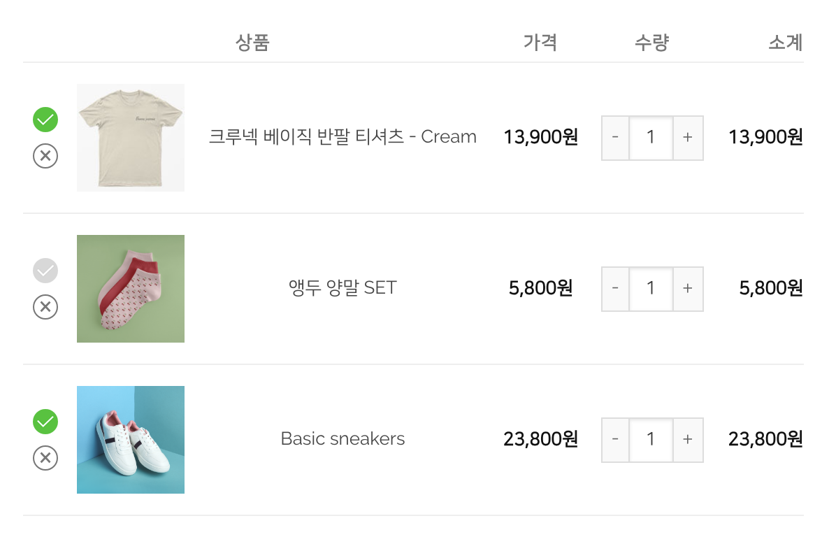 장바구니에서 구매를 원하는 상품만 선택하여 구매할 수 있습니다.