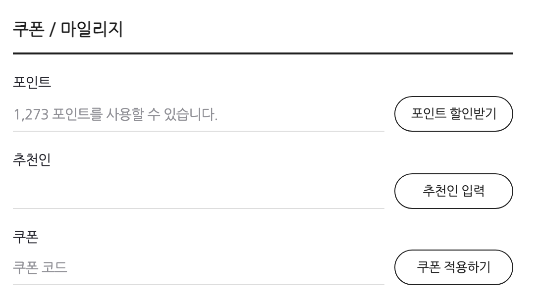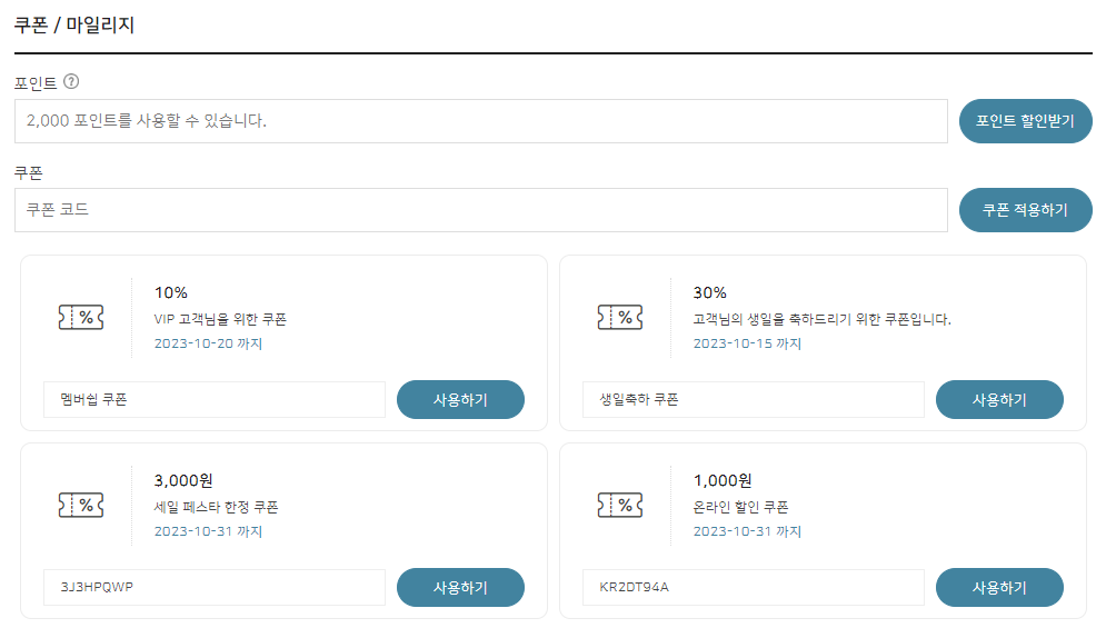 쿠폰 / 포인트 입력 폼을 표시해주는 숏코드입니다.