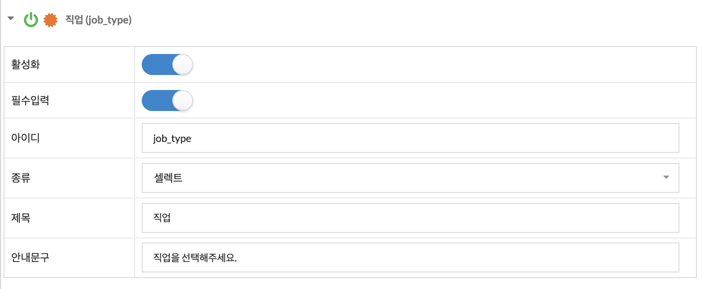 예시 : 이미지와 같이 커스텀 필드를 추가한 경우, billing_sample 영역에 job_type을 추가합니다.