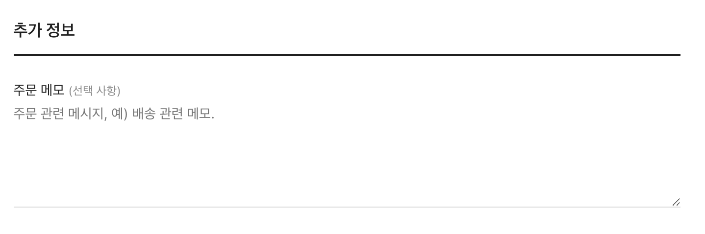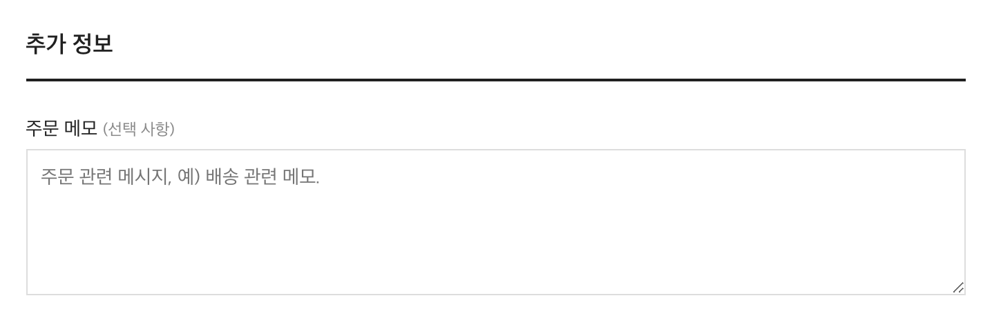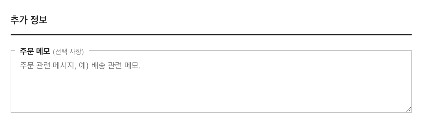 1. title – 주문메모 제목을 지정합니다. 기본값은 추가 정보 입니다.