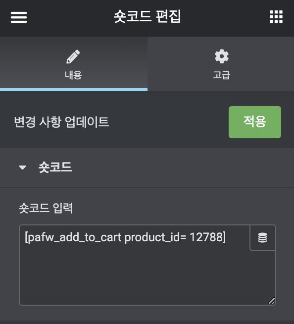 페이지 상단에 숏코드 [pafw_add_to_cart product_id=”상품 아이디”]를 추가합니다.
