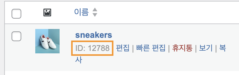 상품 아이디는 [상품 > 모든 상품]에서 상품에 마우스 오버하여 상품 아이디를 확인할 수 있습니다.
