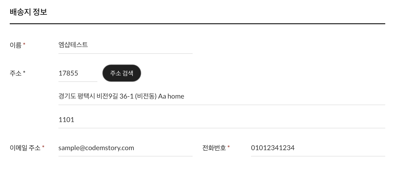 배송지 주소를 입력하는 폼을 표시하는 숏코드입니다.