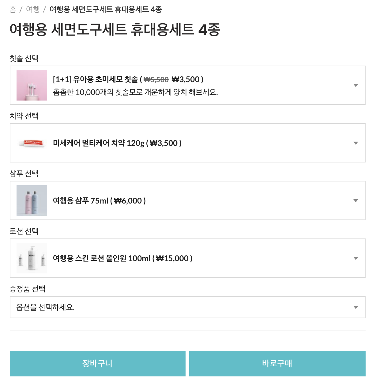 해당 상품 타입은 빌더로 커스텀마이징된 상품에서 동작되지 않으며,