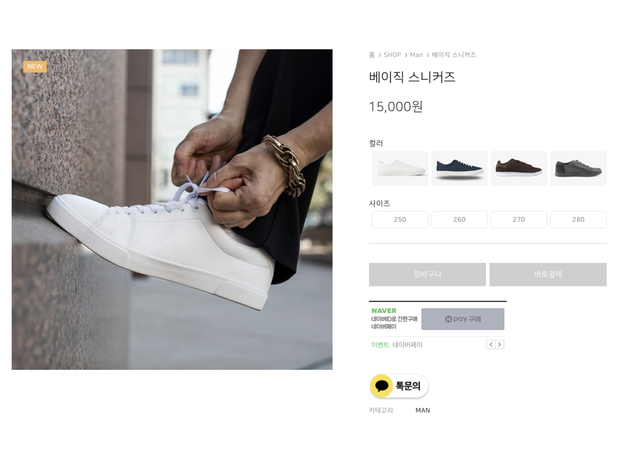 DIY 상품 옵션 기능을 통해 상품의 옵션을 추가한 경우 옵션 스타일을 버튼 또는 썸네일 방식으로 표시할 수 있습니다.