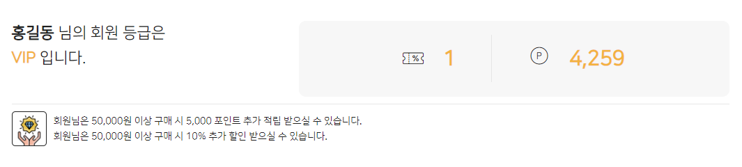 (참고) 포인트 / 쿠폰 메뉴는 엠샵 프리미엄 포인트 플러그인과 엠샵 쿠폰 플러그인이 설치 및 활성화되어 있어야 합니다.