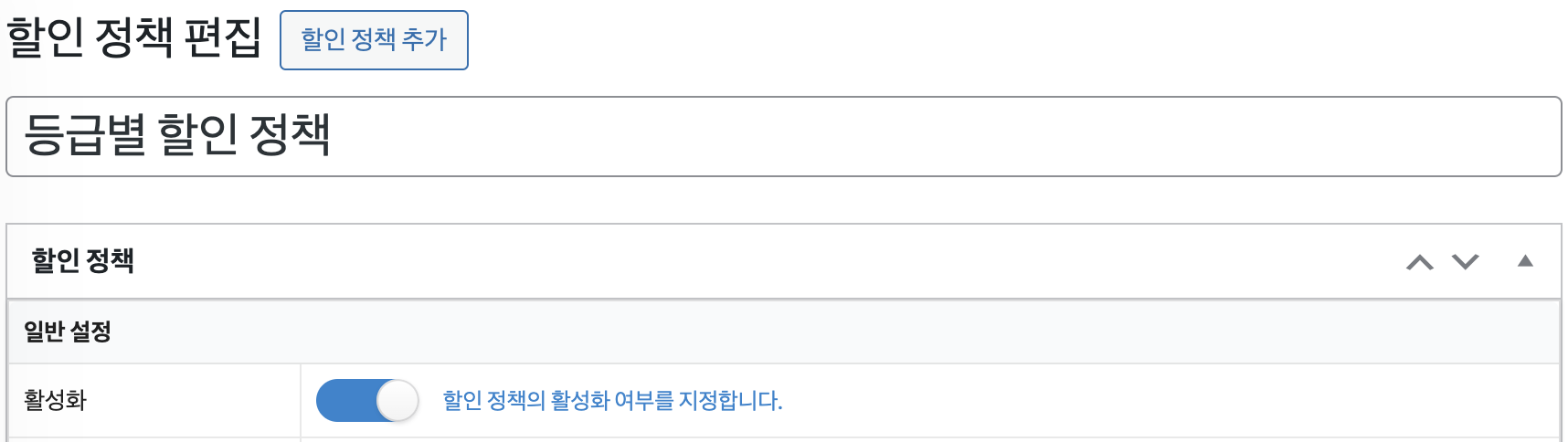 해당 설정을 진행하지 않으시는 경우 이미지의 ‘등급 할인’ 대신 ‘할인’ 문구가 표시됩니다.
