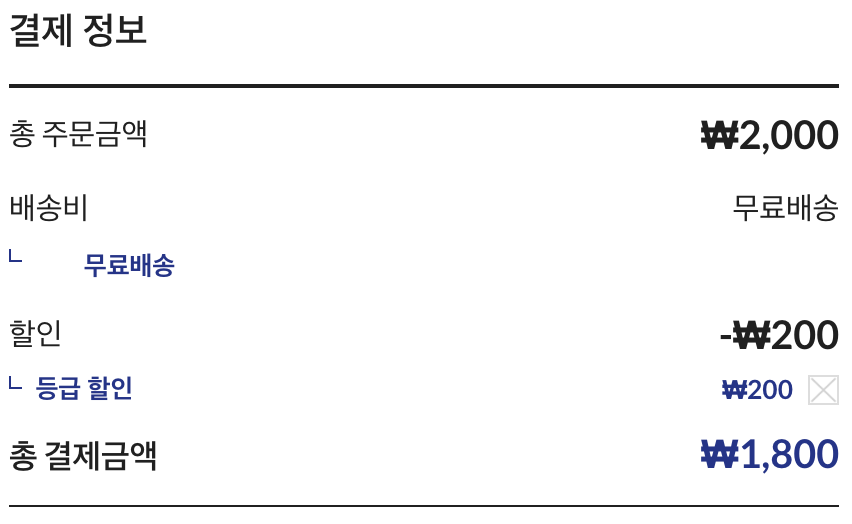 VIP 등급의 계정으로 확인해보니 10% 할인이 적용된 것을 확인해볼 수 있었습니다.