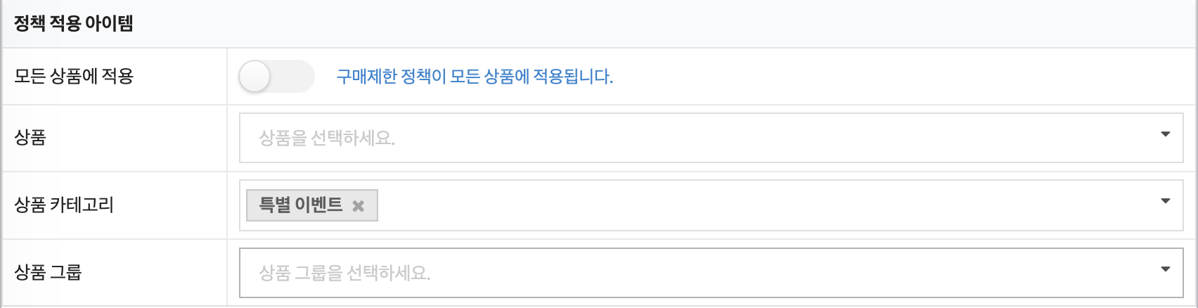 정책을 적용할 상품을 원하시는 방식으로 맞춰주시면 됩니다.