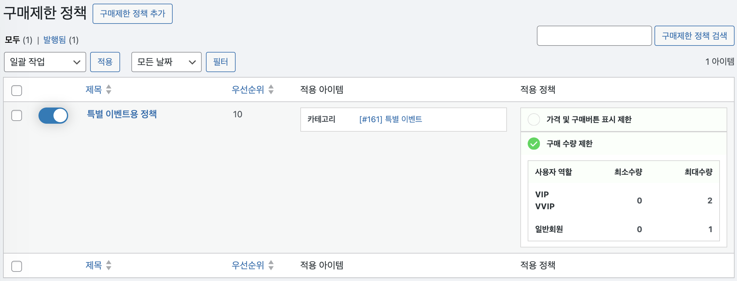구매제한 정책 설정하기 #