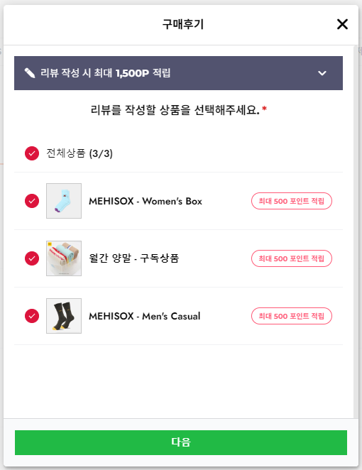 (하단 이미지처럼) 리뷰를 작성할 상품을 선택 후 한 번만 작성하면
