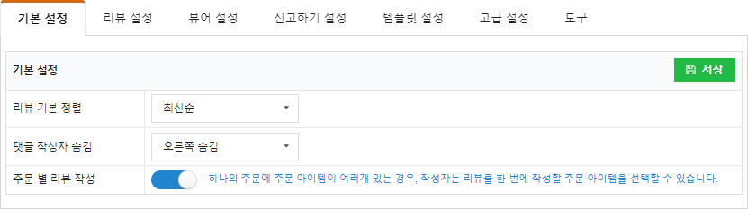 ( ex. 고객이 여러 상품을 구매 후 주문했을 때, 고객은 모든 상품에 대한 리뷰를 한 번만 작성할 수 있습니다. 비활성화할 경우, 고객은 주문 상품 별로 각각 작성해야 합니다. )주문 별 리뷰 작성 기능을 활성화할 경우