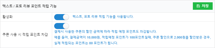 각종 리뷰의 포인트 적립 기능을 활성화 합니다.